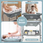 Simplify bath and diaper changes with the Foldable Baby Bathtub with Changing Table. This all-in-one station features a waterproof pad, storage tray, and foldable design, making it perfect for home, travel, or small spaces.